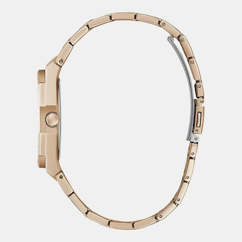 Reflecting the dynamism of modern lifestyles, this women analog watch from Guess will be a great addition to your collection of watches. Secured by a mineral glass, the purple round dial. It has a crown for time adjustment. The stainless steel strap comes in a rose gold hue that further elevates the look of the timekeeper. Moreover, it is equipped with a fold-over clasp with double push button safety clasp to ensure a secure fit on the wrist.