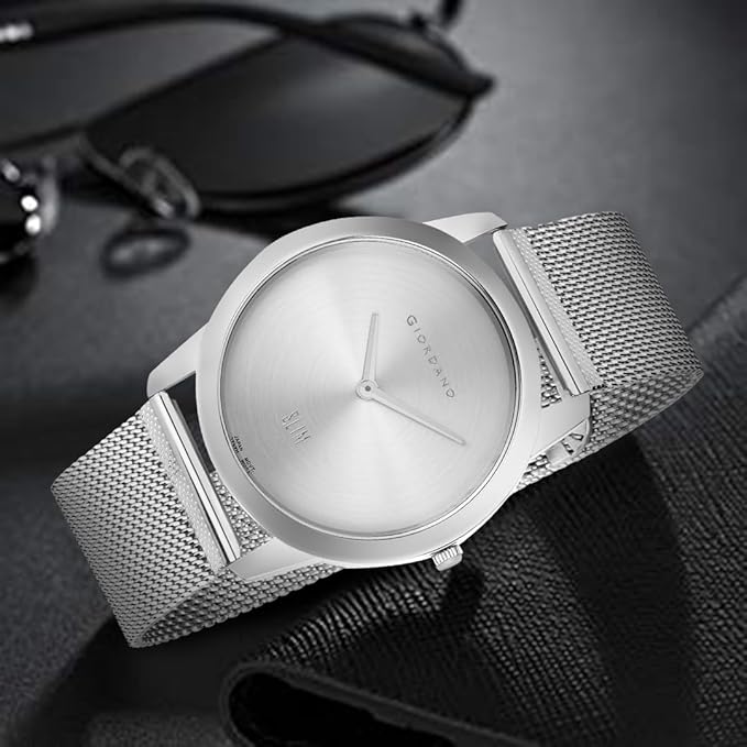 A perfect fusion of style and functionality, this men's analog watch from Giordano is sure to make a style statement. The silver round dial is housed in a 41 mm case. It exhibits plain two hands and a crown for time adjustment. The metal strap exudes a silver hue that accentuates the look of the watch. Besides, it is completed with a hook buckle clasp to ensure a secure fit on the wrist. This water-resistant watch will be a timeless possession.