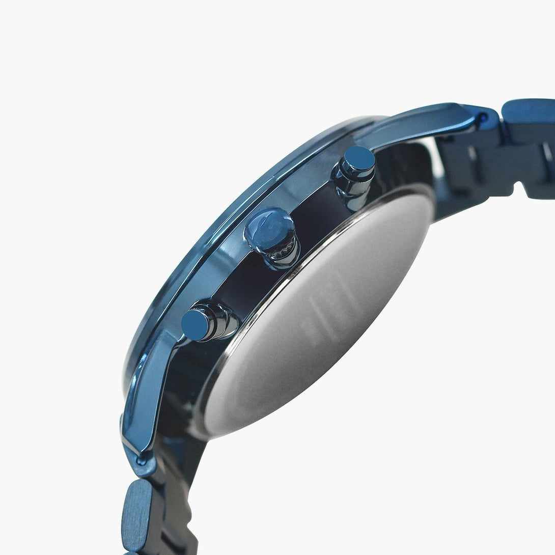 This multifunction watch is crafted with a sleek mineral glass dial and metal strap. The dial is infused with a three-hand movement and 50m water resistance.