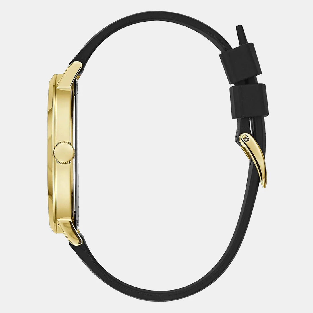 Stay fashionable with Quartz watch from Guess available on Amazon. This Analogue watch has Round Black dial with a dial diameter of 44 Millimeters . The Black colored straps in the watch are made of Silicone . This watch has 2 Years warranty.
