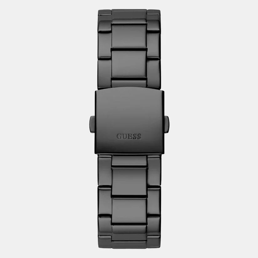 Add A Hint Of Charm To Your Look With This Men'S Analog Watch From The Crescent Collection By Guess. Its Stainless Steel Bracelet Flaunts A Black Hue That Accentuates The Look Of The Watch. The Black Round Dial Is Nestled In A 41.5 Mm Case. It Exudes Plain Two Hands And A Crown For Time Adjustment. Moreover, It Is Fitted With A Push-Button Clasp To Ensure A Secure Fit On The Wrist.
