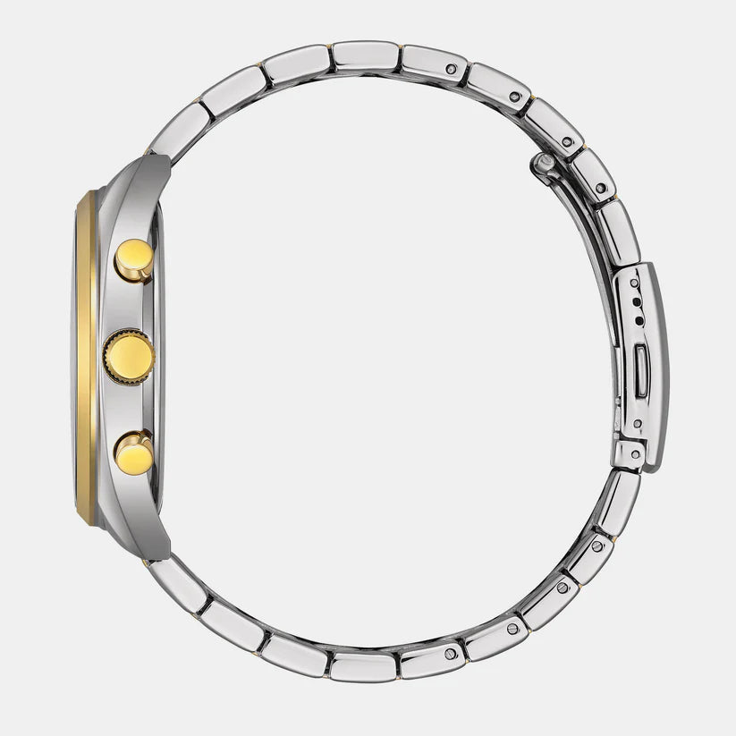 Citizen presents a Male watch that balances style and functionality. Showcasing a Black Dial of Stainless Steel material and two-tone stainless steel strap. The 42mm case size is complemented by an 11mm case thickness and 5 ATM water resistant.