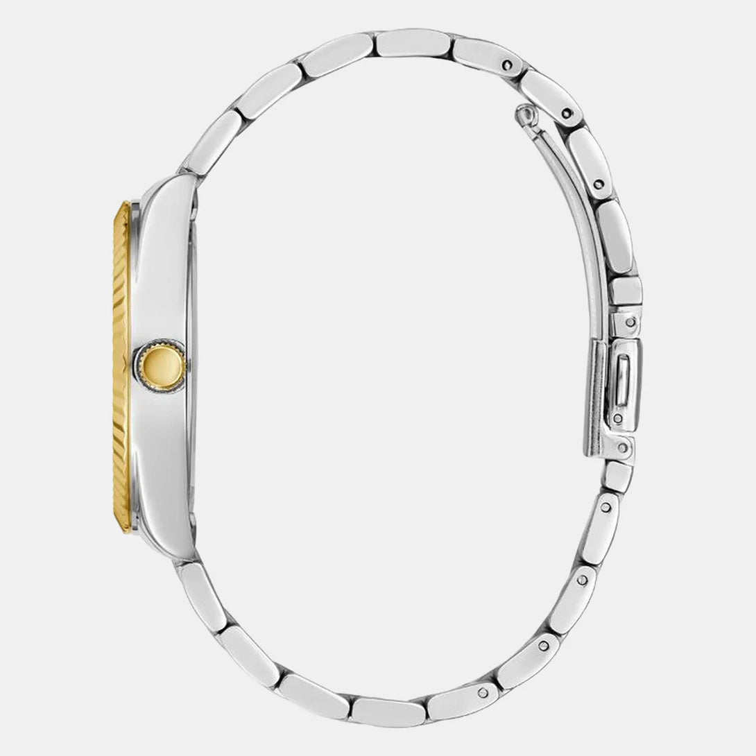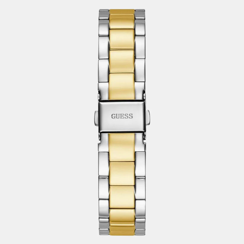 Add A Stylish Dimension To Your Look By Wearing This Women'S Analog Watch From The Luna Collection By Guess. The Green Round Dial Is Nestled In A 30.8 Mm Case. It Vaunts Plain Three Hands And A Crown For Time Adjustment. The Stainless Steel Bracelet Exudes A Golden Hue That Accentuates The Look Of The Watch. Moreover, It Is Fitted With A Push-Button Clasp To Ensure A Secure Fit On The Wrist.